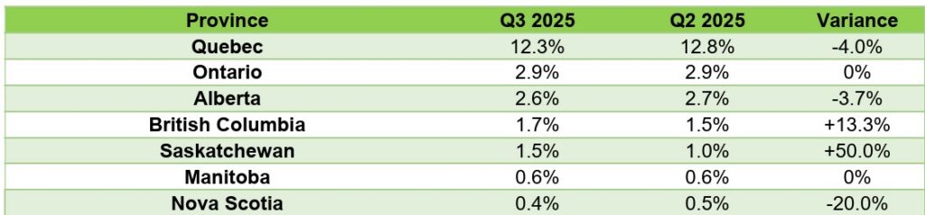 Q3 2025 vs Q2 2025 Market Share by Province3 Quarter over Quarter