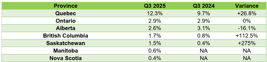Q3 2025 vs Q3 2024 Market Share by Province3 | Comparable Period