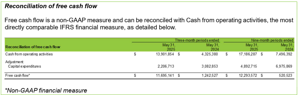 MONTREAL, QUÉBEC – July 28, 2025 – Cannara Biotech Inc. (“Cannara”, “the Company”, “us” or “we”) (TSXV: LOVE) (OTCQX: LOVFF) (FRA: 8CB0), a vertically integrated producer of premium-grade cannabis products at affordable prices with two mega facilities based in Québec spanning over 1,650,000 sq. ft., today announced its financial and operating results for the three and nine-month periods ended May 31, 2025.